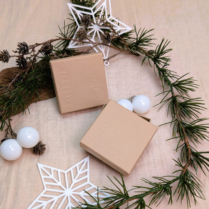 Dich erwarten vier liebevoll verpackte Überraschungen – für jeden Adventssonntag ein einzigartiges Schmuckstück, handgemacht aus dem Sovee Studio.