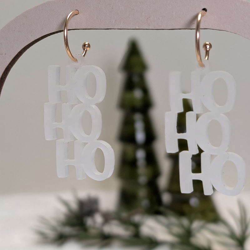 Handgemachte Weihnachts-Ohrringe aus Acrylglas - HO HO HO
