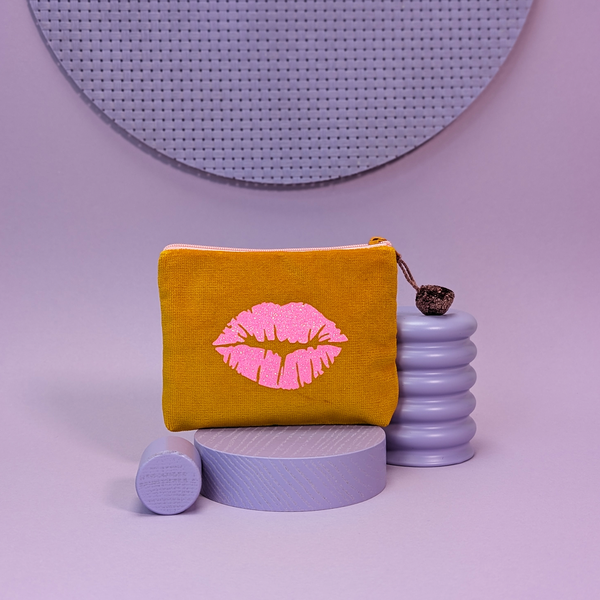 Kosmetiktasche Mini "Kussmund" orange/pink